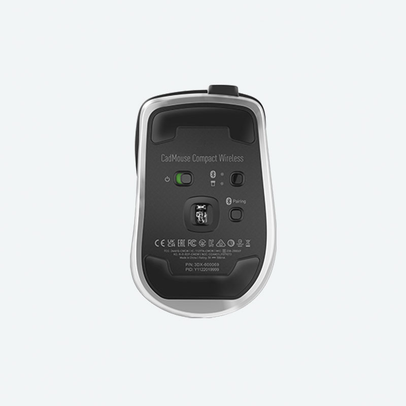 With the CadMouse Compact Wireless you can choose among three kinds of connection and easily switch between them: work wireless via 3Dconnexion Universal Receiver, Bluetooth or with USB while charging the integrated Li-Ion battery.